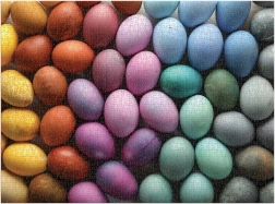 Puzzle avec un motif d'œufs colorés organisés en une transition de couleurs fluide, offrant une expérience visuelle étonnante.