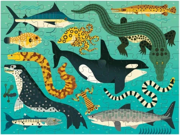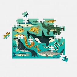 Ce puzzle captivant représente d'un côté des prédateurs terrestres, tandis que de l'autre côté, il montre des chasseurs marins de profondeur. Fabriqué avec une proportion significative de papier recyclé, il assure une durabilité écologique et l'innocuité des couleurs utilisées. Le fini mat garantit une représentation fidèle des détails et des couleurs, et la surface lisse du verso empêche la formation de poussière pendant le stockage.