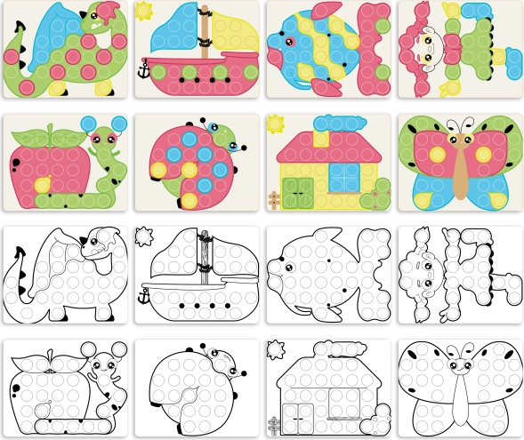- Développement des compétences : motricité fine, coordination œil–main, entraînement de la concentration et reconnaissance des couleurs et des formes