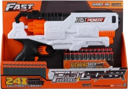 Projectile souple et sûr. Projectile à tête ronde, fabriqué en mousse et recyclable. Longue portée de tir. Capacité du chargeur : 7 projectiles. 24 projectiles dans l’emballage. Portée de tir : 10–15 m.