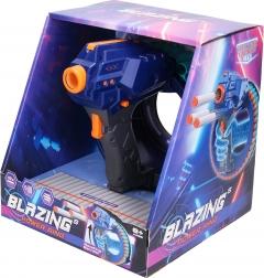 Un pistolet à fléchettes en mousse amusant et sûr, au format compact de 21 cm, offre une action dynamique grâce à son barillet rotatif et à son interrupteur ON/OFF simple à utiliser. Le pack comprend 40 fléchettes en mousse pour de longues parties. L’alimentation est assurée par 4× piles AA (non incluses).