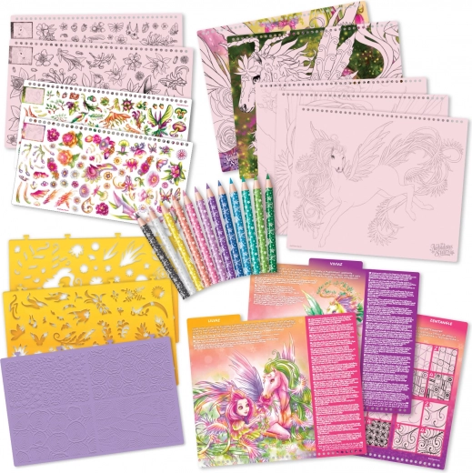 Entrez dans un monde de fantaisie avec Lilyaz et Viviaz et développez votre créativité pas à pas. Ce carnet richement équipé allie amusement et apprentissage – des techniques de dessin pratiques à la théorie des couleurs, jusqu'à l'histoire d'un cheval inspirante, qui stimulera l'imagination et l'envie de créer.