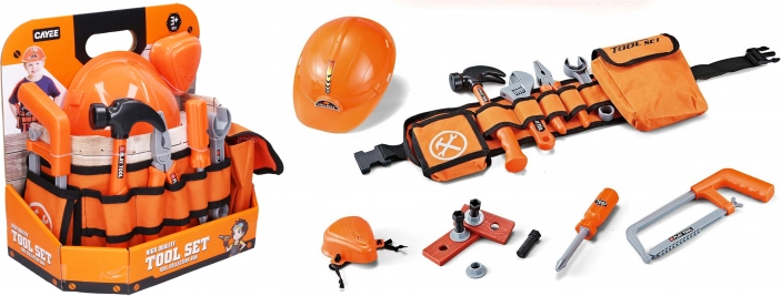 Pratique, ce set d’outils pour petits bricoleurs contient tout le nécessaire pour jouer en toute sécurité et réaliser ses premiers « bricolages ». Il comprend une ceinture textile pour porter les outils confortablement, un casque et un riche assortiment : masque, scie, marteau, pince multiprise, clé à molette, tournevis, clé, 2 planchettes, 3 vis et 3 écrous.