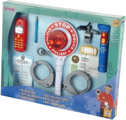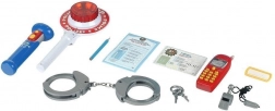 Set de police de la marque Klein composé de 10 éléments différents, dont des menottes, une lampe torche et un bâton de signalisation lumineux, qui ravira tout jeune passionné de rôle de policier.