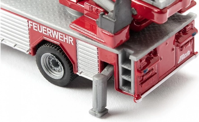 Camion de pompiers avec échelle télescopique et pivotante à l’échelle 1:87. Pièces en métal et en plastique, pneus en caoutchouc. Idéal pour enfants et collectionneurs.