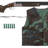 Ensemble de fusil à pompe avec gilet Gonher, idéal pour les petits chasseurs. Le fusil est fabriqué en plastique résistant et en métal, avec la possibilité d'insérer des capsules pour des effets sonores plus réalistes.