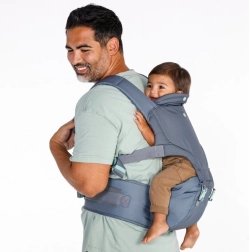 La conception bien pensée avec bretelles rembourrées, large ceinture et soutien de tête réglable assure le confort du parent comme de l’enfant. La poche latérale pratique garde les petits objets à portée de main et, après usage, le porte-bébé se replie facilement dans un sac frontal compact.