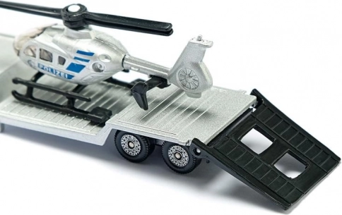 Remorque unique fabriquée à partir de pièces métalliques et plastiques, conçue pour le transport de l’hélicoptère de police SIKU.
