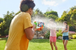 Le mécanisme à pompe produit un jet d’eau puissant avec une portée jusqu’à 9 m, pour atteindre vos cibles à plus longue distance.
