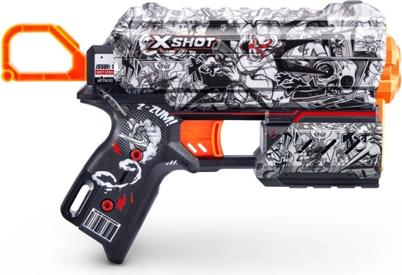 Profitez d’un jeu d’action avec le X-Shot Skins Flux, qui séduit par son design comics/graffiti et son ergonomie confortable. Grâce à sa qualité de fabrication et à son rechargement facile, il est idéal pour des duels rapides à la maison comme en extérieur. Les fléchettes à poches d’air volent plus loin et plus droit – exactement là où vous visez.