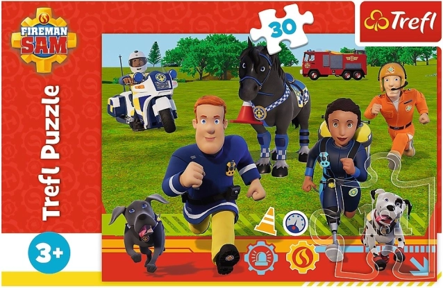 Plongez dans l’univers de votre héros préféré avec le motif SAM LE POMPIER – Prêts à aider. Ce puzzle de 30 pièces est idéal pour les premières énigmes, développe la motricité, la patience et l’imagination, et, une fois assemblé, forme une image colorée de 27 × 20 cm.