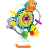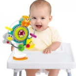 La ventouse stable permet de fixer le jouet solidement sur différentes surfaces, comme des chaises hautes ou des tables, assurant que l'enfant puisse jouer sans être dérangé.