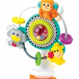 Le jouet est conçu pour capter l'attention des jeunes enfants et enrichir leurs compétences visuelles et motrices. Grâce aux animaux colorés comme l'éléphant, le singe et la girafe, qui tournent et font du bruit, il capte l'attention de chaque tout-petit. Au centre du moulin tournant se trouve un hochet à billes, ajoutant une dimension supplémentaire au jeu.