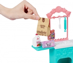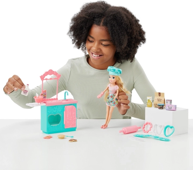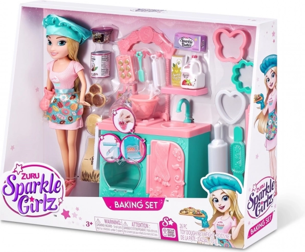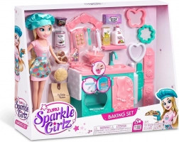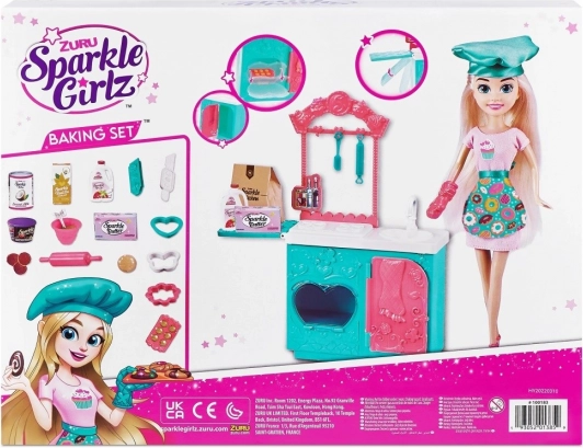 L'ensemble comprend des éléments indispensables pour le jeu, y compris de petits jouets alimentaires, des bols, spatules, et moules permettant de simuler la cuisson de façon réaliste. Ouvrez le four, insérez les cookies et faites semblant qu'ils cuisent ! Grâce aux vêtements interchangeables, la poupée peut être combinée avec d'autres personnages de la gamme Sparkle Girlz.