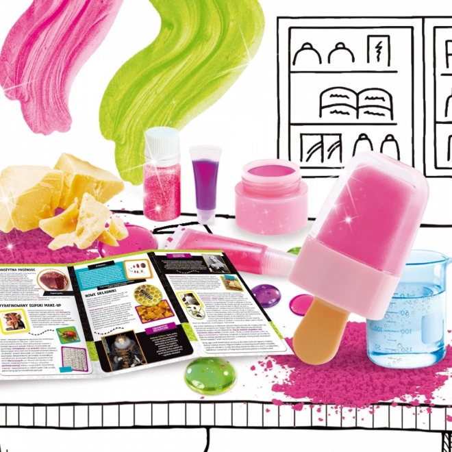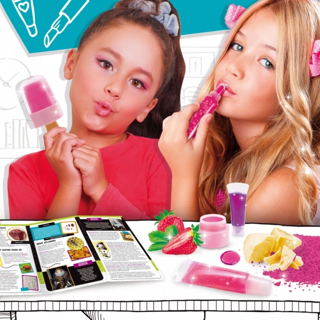 Un kit scientifique avec des ingrédients naturels et sûrs pour créer des gloss à lèvres fantastiques, colorés et parfumés, que vous pourrez avoir toujours avec vous ! Un incroyable étui en forme de glace vous permettra de fabriquer un véritable… gloss à la mode !