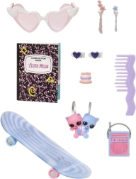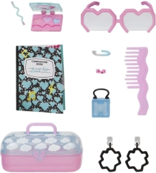 Le set comprend un mini appareil photo, un carnet, un peigne et d’autres petits accessoires sympas. Ils favorisent le jeu narratif, le coiffage et les transformations mode.