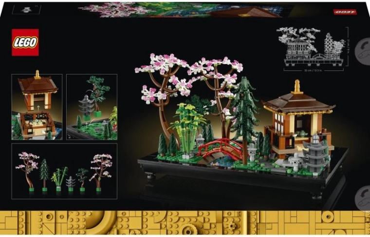 Profitez d’une construction concentrée avec une riche sélection d’éléments, notamment une carpe koi, des fleurs de lotus, des lanternes de pierre et une salle de thé dans le pavillon.
