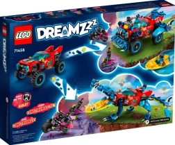 LEGO DREAMZzz Voiture Crocodile apporte le monde exaltant des rêves dans les jeux des enfants. Ce set permet aux enfants dès 8 ans de construire et de transformer un véhicule unique qui aidera à sauver Jayden des griffes du méchant Chasseur nocturne.