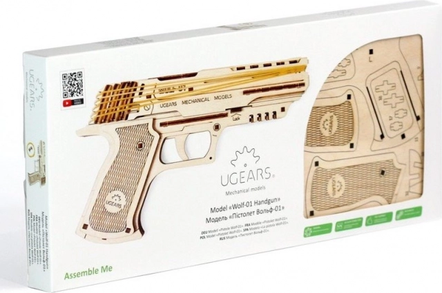 Le modèle UGEARS Wolf-01 est une réplique en bois détaillée d’un pistolet à propulsion par élastiques, que vous assemblez sans colle grâce à des pièces découpées avec précision. Après l’assemblage, vous obtenez un modèle mécanique fonctionnel qui tire des élastiques de manière fiable et vous montre concrètement la coopération entre les engrenages, le mécanisme de détente et l’élasticité des matériaux.