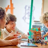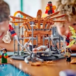 Inclut trois bases pour des actions aériennes avec minifigurines, un toit amovible révélant l’Homme-Sable, une partie arrière ouvrante montrant un portail, et une toile souple pour immobiliser les méchants.