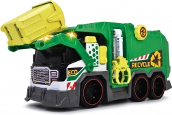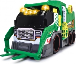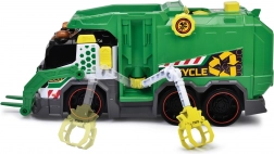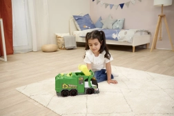 Camion poubelle Camion poubelle avec effets lumineux et sonores. Il est équipé d’un lève-bacs automatique, d’une pince, d’un cliquet mécanique pour les déchets et la benne comprend une poubelle.