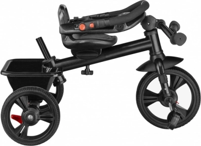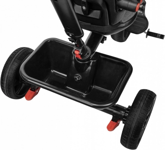 Les grandes roues PU ne nécessitent aucun entretien et amortissent parfaitement les irrégularités. Poignée parentale réglable sur 3 niveaux, capote pliante avec aération et accessoires pratiques (panier, sac, porte-boisson, repose-pieds rabattable) transforment chaque sortie en aventure confortable et sûre. La sécurité est confirmée par des tests selon la norme EN 71 (Intertek).