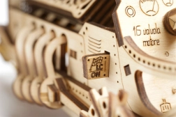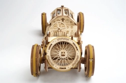 Découvrez la magie des premières voitures de course avec le modèle minutieusement détaillé UGEARS U9 Grand Prix. Ce modèle mécanique en bois à remontage offre une boîte de vitesses fonctionnelle (point mort et marche arrière), une direction, un essieu avant suspendu et des pneus caoutchoutés pour une meilleure adhérence. Grâce au moteur V8 visible avec pistons mobiles et ventilateur de refroidissement, il offre un spectacle fascinant en mouvement comme sur une étagère.