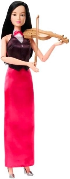 La talentueuse Barbie violoniste entre en scène ! Cette splendide poupée est prête à exhiber ses talents de musique avec son violon et son archet, vêtue d'une robe élégante avec un gilet noir. Grâce à ses articulations mobiles aux épaules et aux coudes, les petits musiciens peuvent aider Barbie à jouer du violon.
