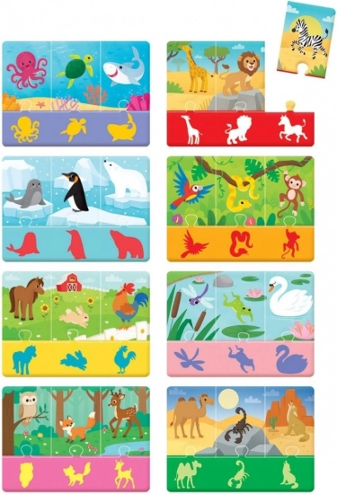 Les enfants apprennent de façon ludique à reconnaître les animaux et à relier logiquement les bonnes paires. Idéal pour faire ses premiers pas dans l’univers des puzzles.