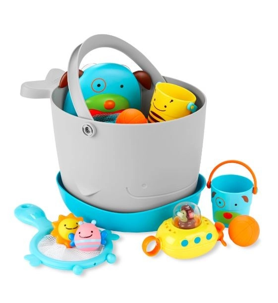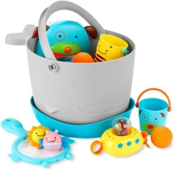 Transformez le bain en un rituel ludique avec le set SKIP HOP de 10 pièces pour enfants dès 9 mois. Un seau avec base d’égouttage séparée facilite le séchage, tandis que les jouets animaux, la épuisette, le sous-marin Petit Singe et le panier de basket de bain développent la motricité et l’imagination. De grands orifices d’évacuation et un entretien facile assurent l’hygiène et l’ordre dans la salle de bain.