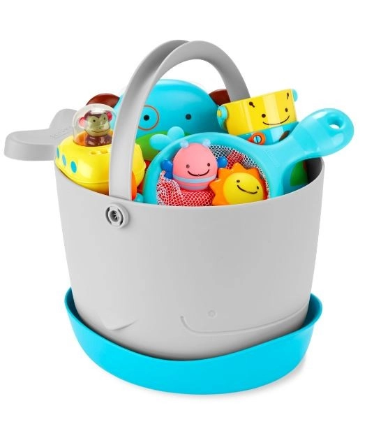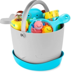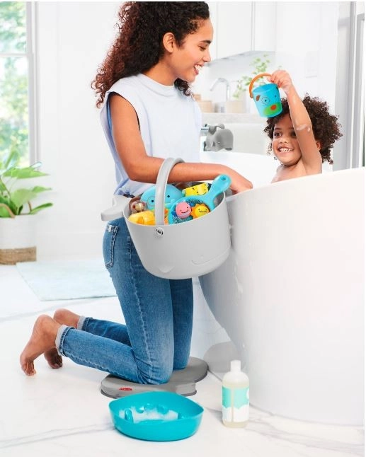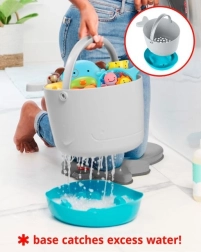 Une base d’égouttage pratique et de grands orifices d’évacuation gardent les jouets secs et hygiéniques. Transport facile grâce à une anse robuste.