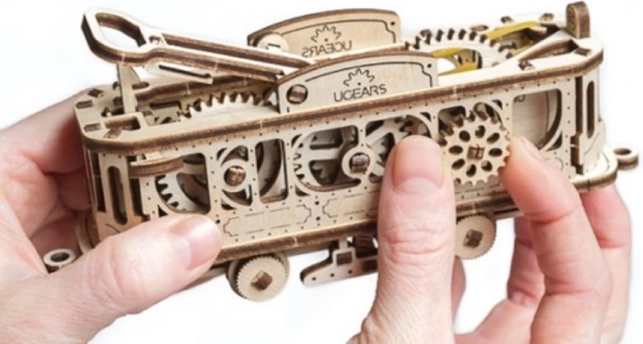 La maquette UGEARS de la série Mechanical Town vous emmène dans un monde de mécanique ingénieuse, où des découpes laser précises se transforment en une ligne de tramway en bois réaliste. Le modèle offre une structure ouverte, grâce à laquelle vous pouvez observer le travail des engrenages, ainsi qu’un mécanisme à ressort – le tramway circule réellement sur une voie courbe.