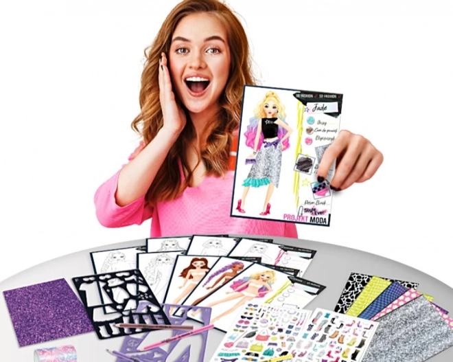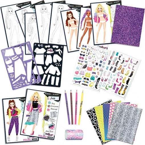 Le set créatif de la gamme Projet Mode contient de véritables matériaux de couture aux textures variées ainsi que des accessoires stylés de la plus haute qualité, permettant de créer un lookbook unique.