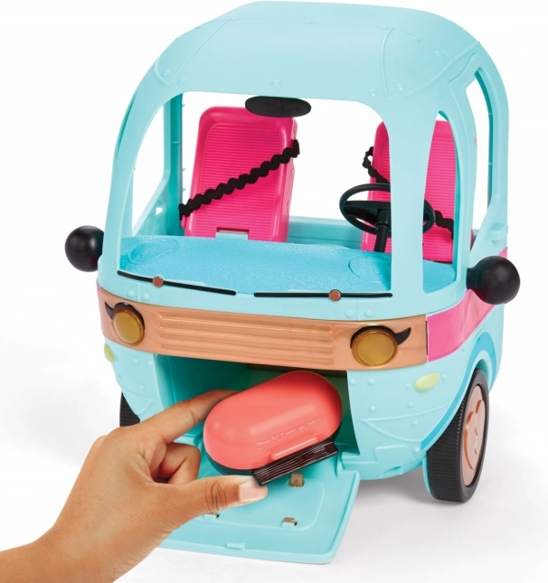 L.O.L. Surprise! Glam N' Go Camper est le véhicule le plus incroyable pour vos poupées L.O.L. Surprise, leur permettant de voyager avec un style inégalé. Le camping-car contient plus de 50 surprises à déballer, plus de 10 espaces de jeu et peut accueillir les poupées de mode LOL Surprise OMG ainsi que les poupées LOL Surprise. L’arrière du camping-car s’ouvre. Une fois le jeu terminé, tous les accessoires et objets peuvent être rangés à l’intérieur.