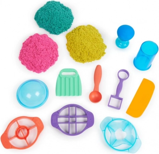 Le coffret ultime pour les amateurs de sable cinétique comprend 900 g de sable en trois couleurs (rose, jaune, bleu-vert) et 10 outils pratiques, dont 3 accessoires de coupe exclusifs pour des effets impressionnants. Les enfants peuvent mélanger, superposer, couper, presser et modeler le sable selon leur imagination – un jeu addictif, apaisant et sûr.