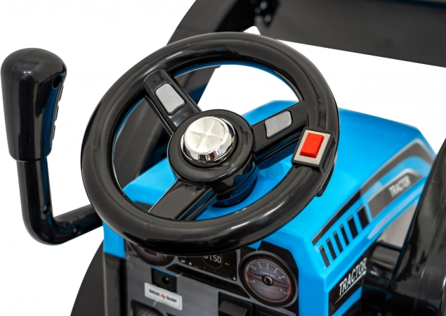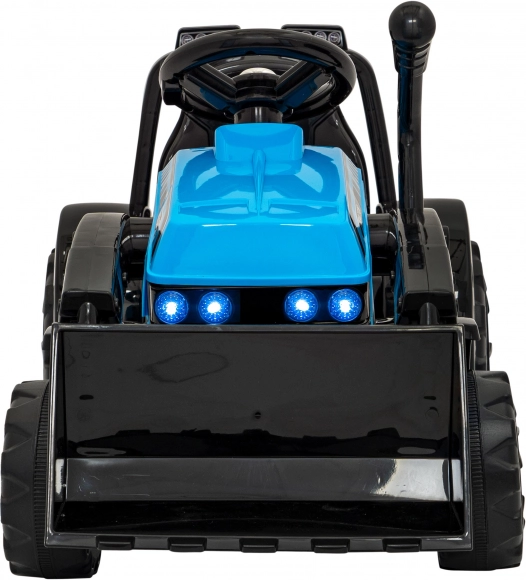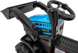 Tracteur pour enfants stylé avec godet chargeur avant pour des balades amusantes et des jeux de chantier. Il offre des feux LED, des mélodies et un klaxon sur le volant, une motorisation 25 W et une bande de roulement en caoutchouc pour une meilleure traction. Idéal pour les plus petits conducteurs qui veulent vivre leurs propres aventures.