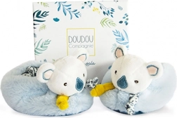 Cet ensemble cadeau comprend de magnifiques chaussons en peluche avec le motif de koala Yoca, spécialement conçus pour les nouveau-nés de 0 à 6 mois. Les chaussons sont équipés de hochets intégrés qui non seulement maintiennent les pieds au chaud, mais favorisent également la motricité globale de l'enfant et l'amusement.