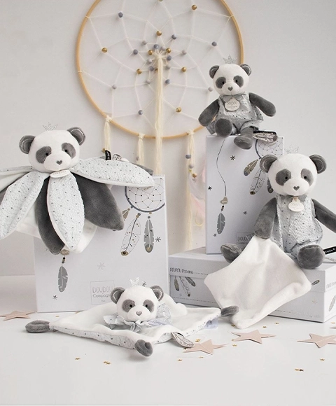 Panda en peluche avec couverture est le compagnon idéal pour votre bébé dès le premier jour. Il lui offre non seulement une douceté et un confort, mais éveille aussi ses sens et sa curiosité.