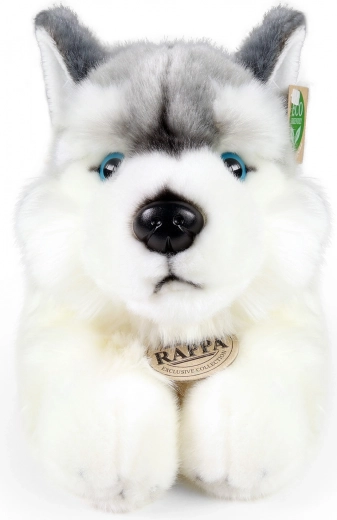 Ce husky couché d’environ 30 cm est incroyablement doux au toucher et, grâce à sa réalisation détaillée, paraît très réaliste. La bourre écoresponsable issue de bouteilles PET recyclées est au toucher indiscernable d’un rembourrage classique et est certifiée même pour les tout-petits.