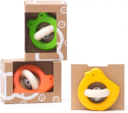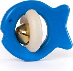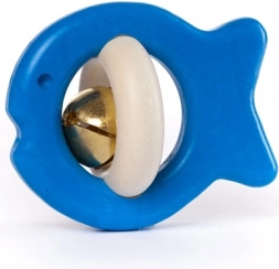 Ce hochet en bois de qualité, en forme de poisson, est fabriqué à partir de matériaux naturels (bois et métal) et répond à toutes les normes de sécurité européennes. Grâce à sa forme ergonomique, il est facile à saisir même par les plus petites mains et est idéal pour les premières découvertes des sons et des textures. Le grelot intégré est solidement fixé et son tintement est agréablement doux.