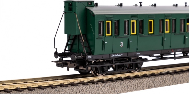 Le modèle de voiture voyageurs ČSD à quatre essieux avec guérite de frein de l’époque III ravira tout modéliste. Il offre un niveau de détail soigné, un attelage court conforme NEM et une échelle H0 fidèle pour un fonctionnement fluide et un aspect réaliste dans votre collection.
