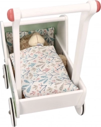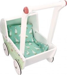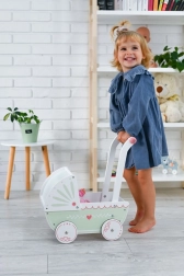 La poussette a une construction en bois robuste qui assure la stabilité et la sécurité pendant le jeu. Idéale pour les petits marcheurs débutants.