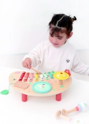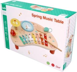 Table de musique printanière est un excellent choix pour les parents qui souhaitent encourager le développement musical de leurs enfants. Cette table en bois comprend des claviers métalliques colorés, un tambour et d'autres composants interactifs qui assurent des heures de plaisir. La base en bois avec des illustrations joyeuses de fleurs et d'animaux crée une atmosphère accueillante pour chaque enfant.