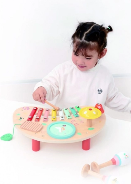 Les enfants peuvent non seulement jouer du xylophone, mais aussi du tambour et des cymbales, ce qui développe leurs compétences rythmiques.