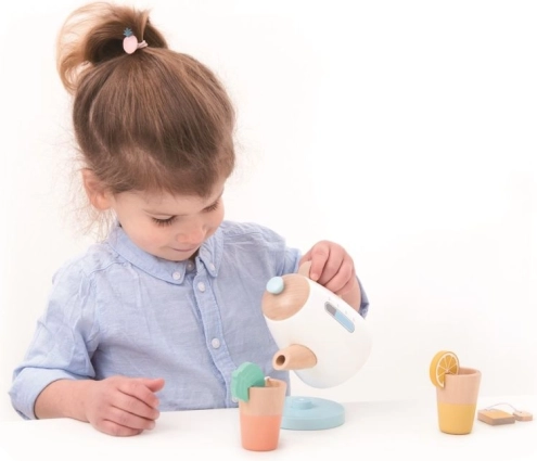 Le set est conçu avec des détails réalistes tels que des tranches de citron, des sachets de thé et des couleurs pastel, qui attirent l'attention des petits enfants.