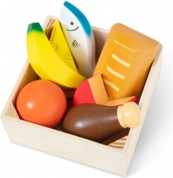 Il comprend des éléments en bois et en plastique qui sont durables et sûrs pour les enfants dès deux ans. Les enfants peuvent apprendre sur les différents groupes alimentaires et améliorer leurs compétences en jouant.