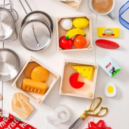 L'ensemble permet aux enfants de développer leur créativité et imagination en jouant avec des articles alimentaires réalistes.