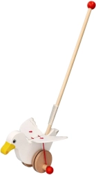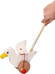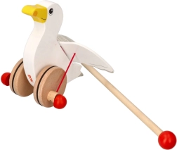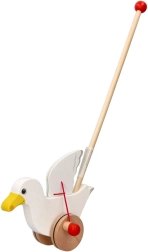 Ce bel oiseau en bois sur tige se déplace élégamment lorsqu’on le pousse et attire l’attention avec ses ailes battantes – la marche devient ainsi plus amusante et plus naturelle pour les petits explorateurs. Grâce à sa construction solide et à sa finition lisse, le jouet est agréable en main et facile à manœuvrer.