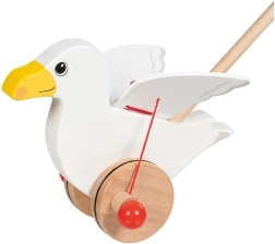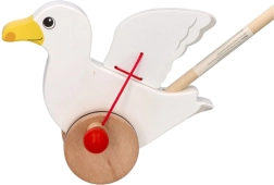 La ravissante mouette Jonas, un jouet en bois à pousser, encourage les enfants à marcher – en avançant, elle bat des ailes, tandis que les roues munies de bandes en caoutchouc protègent le sol. Idéale pour le développement de la motricité globale et de l’équilibre dès 18 mois.