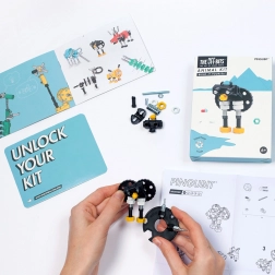 PingouinBit est l’acrobate aquatique des kits de construction. Grâce à un assortiment varié de pièces métalliques et plastiques, vous réaliserez non seulement l’emblématique pingouin, mais aussi d’autres modèles originaux selon votre imagination. Le kit est conçu pour que les enfants développent de manière ludique la représentation spatiale, la créativité et la capacité de résolution de problèmes.